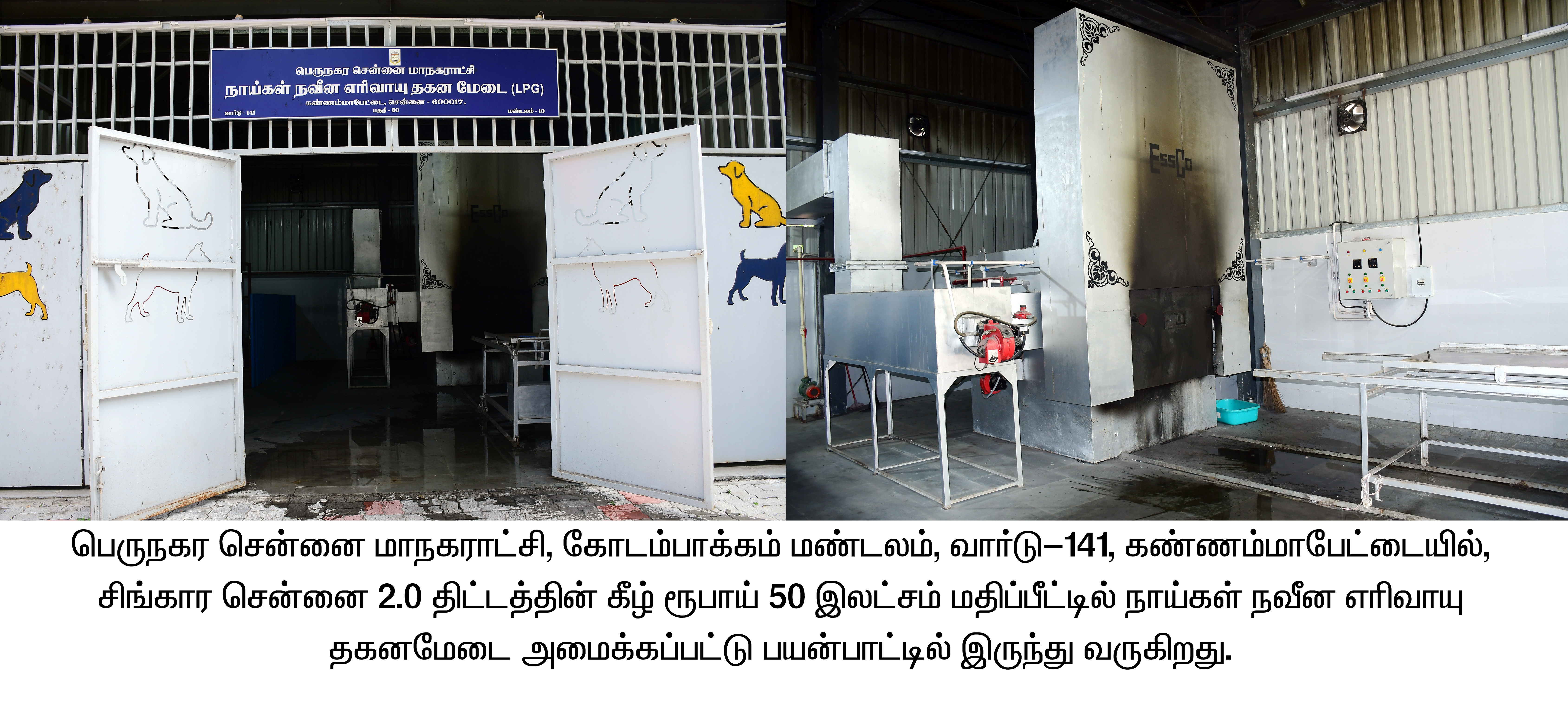 பெருநகர சென்னை மாநகராட்சி, கண்ணம்மாபேட்டையில் சிங்கார சென்னை 2.0 திட்டத்தின் கீழ் ரூ.50 இலட்சம் மதிப்பீட்டில் செல்லப் பிராணிகளுக்கான நவீன எரிவாயு தகனமேடை அமைக்கப்பட்டு இதுவரை 439  இறந்த செல்லப் பிராணிகள் தகனம் செய்யப்பட்டுள்ளது.