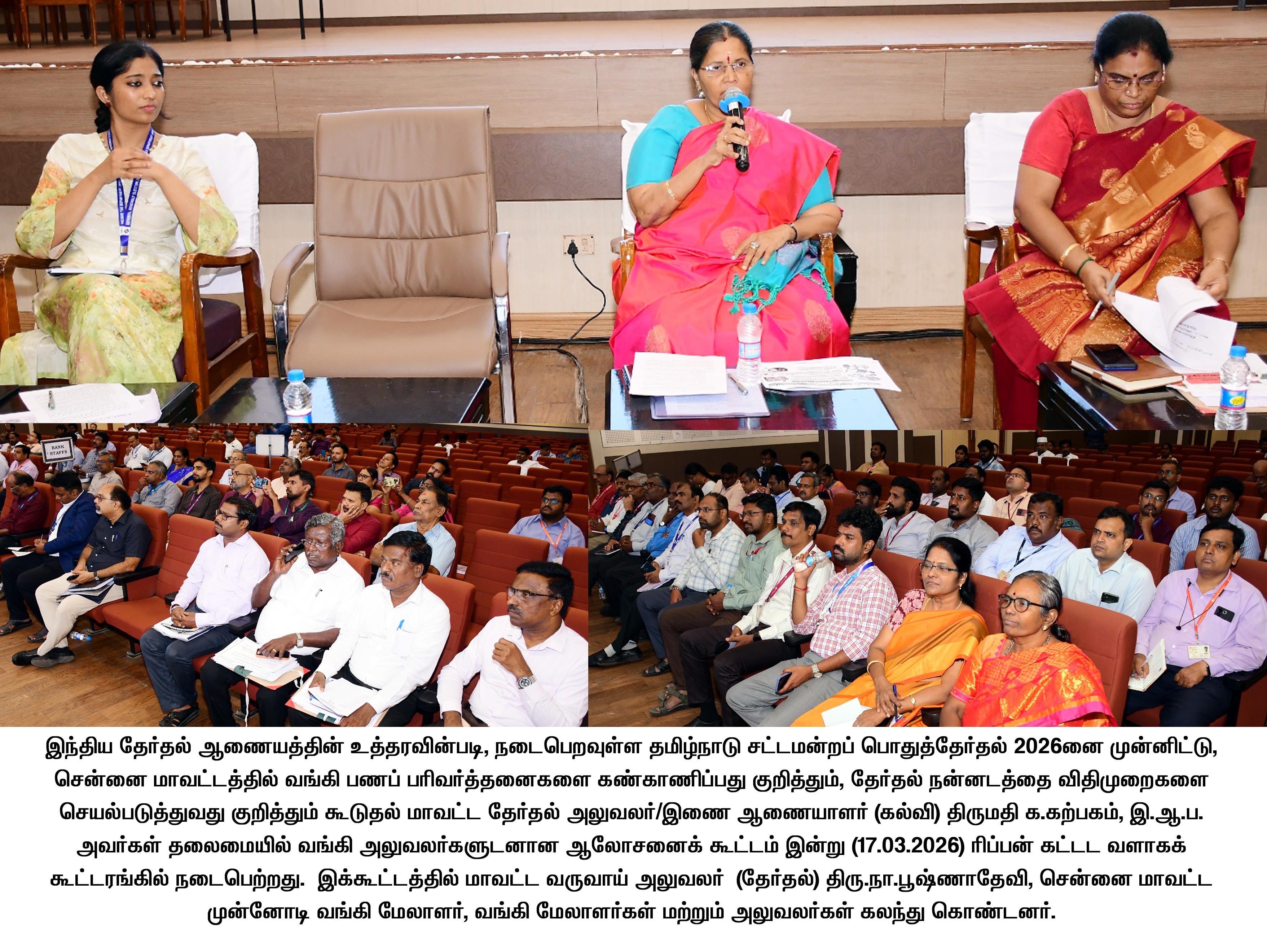 சென்னை மாவட்டத்தில் வங்கி பணப் பரிவர்த்தனைகளை கண்காணிப்பது குறித்தும், தேர்தல் நன்னடத்தை விதிமுறைகளை செயல்படுத்துவது குறித்தும் வங்கி அலுவலர்களுடனான ஆலோசனைக் கூட்டம் இன்று நடைபெற்றது.