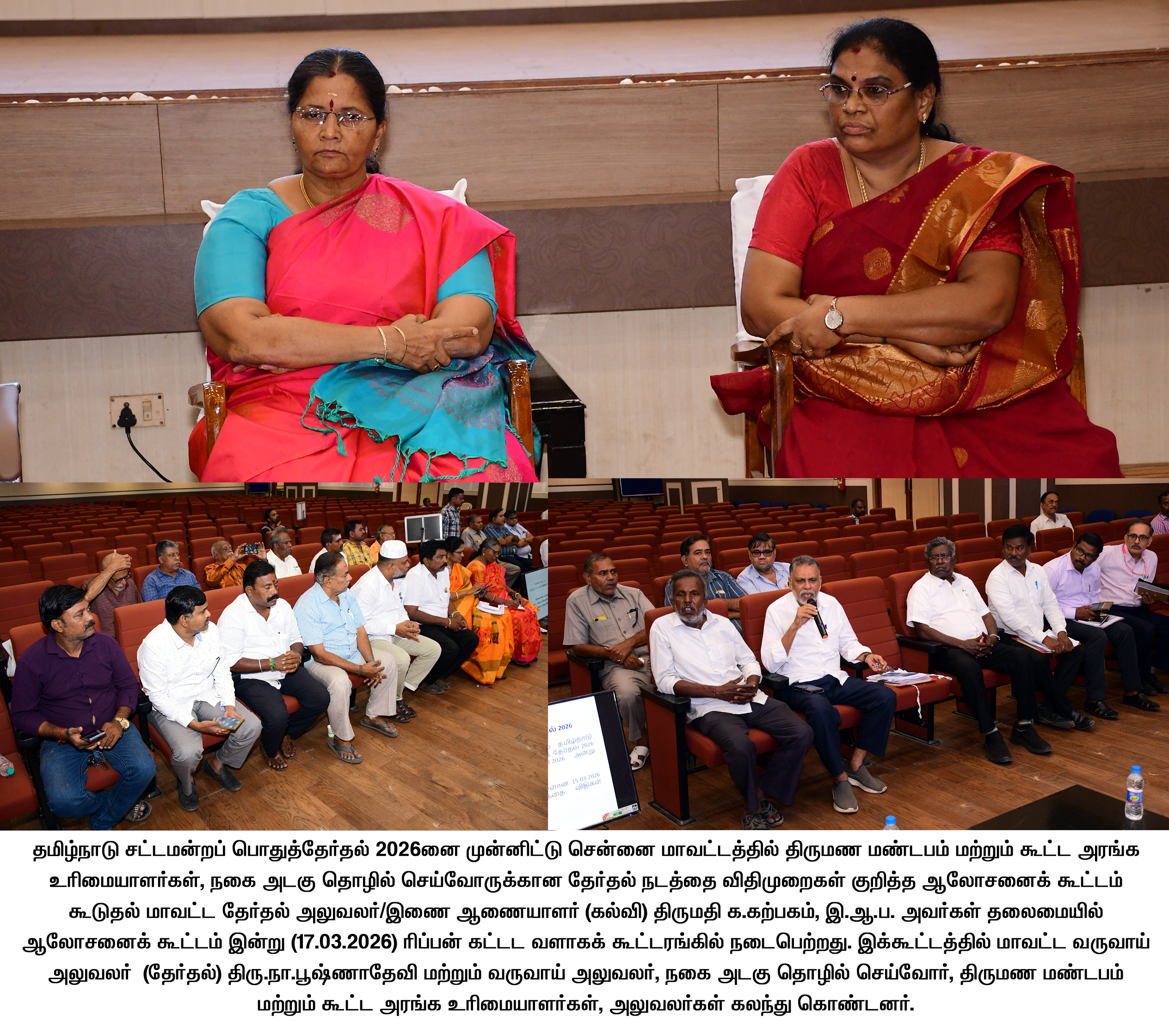 சென்னை மாவட்டத்தில் திருமண மண்டபம் மற்றும் கூட்ட அரங்க உரிமையாளர்கள், நகை அடகு தொழில் செய்வோருக்கான தேர்தல் நடத்தை விதிமுறைகள் குறித்த ஆலோசனைக் கூட்டம் இன்று நடைபெற்றது.
