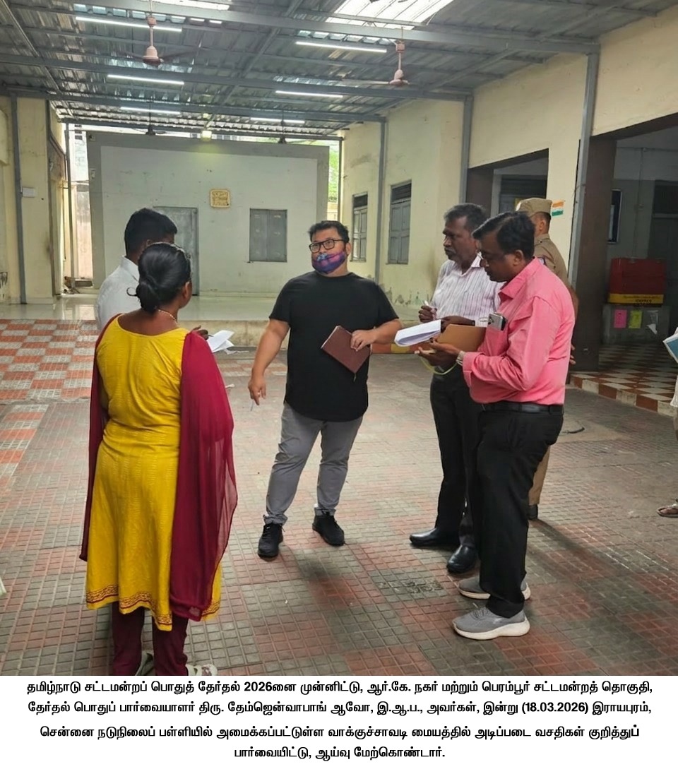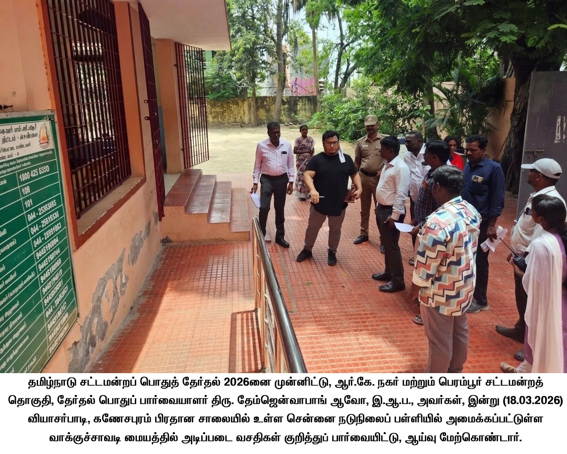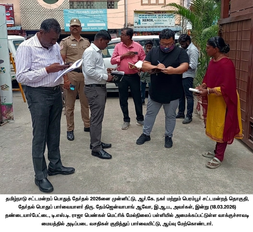 தமிழ்நாடு சட்டமன்றப் பொதுத் தேர்தல் ௲ 2026னை முன்னிட்டு, ரிப்பன் கட்டடத்தில் உள்ள சென்னை மாவட்ட தேர்தல் அலுவலகத்தில் தேர்தல் ஊடக கண்காணிப்பு மையம், கட்டுப்பாட்டு அறை அமைக்கப்பட்டு, தேர்தல் நடத்தை விதிமுறைகள் 24 மணிநேரமும் தொடர்ந்து கண்காணிக்கப்பட்டு வருகிறது