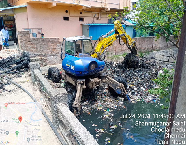 GCC has procured 4 nos. of Robotic Multi-Purpose Excavators with operation & Maintenance for the removal of Hyacinth plants/Rank vegetation / floating materials/silt in the minor drains having width less than 3.5 Mts .