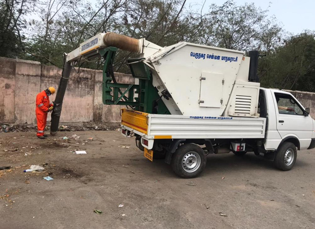 In order to maintain Chennai city litter - free, 15 Nos. of Vaccum Operated Garbage Suction machine Mounted on Small Commercial Vehicle are procured at a total cost of Rs.4.34 crore under Swachh Bharath Mission fund for cleaning of wet garbage and other wastes like cans, human faces, animal waste, food waste, bottles, broken glass, etc from narrow lane, congested places, inaccessible areas especially in slum tenement, canal bank, around the EB box, transformers, etc. These higher end technology machines have large diameter suction hose which can easily remove large quantity of Garbage in short time. It will enhance conservancy activities in Chennai City.