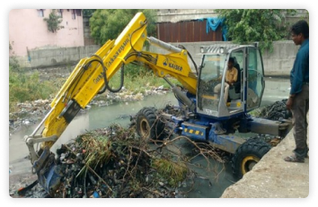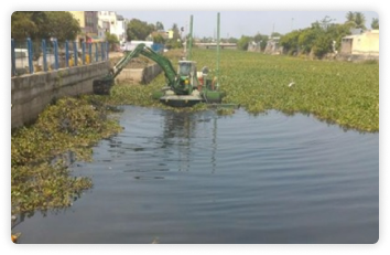 For removing hyacinth and desilting of the canals, Amphibian vehicle has been purchased from Finland and is being used in Buckingham Canal, Captain Cotton Canal, Kodungaiyur canal, Adyar river and Cooum river.